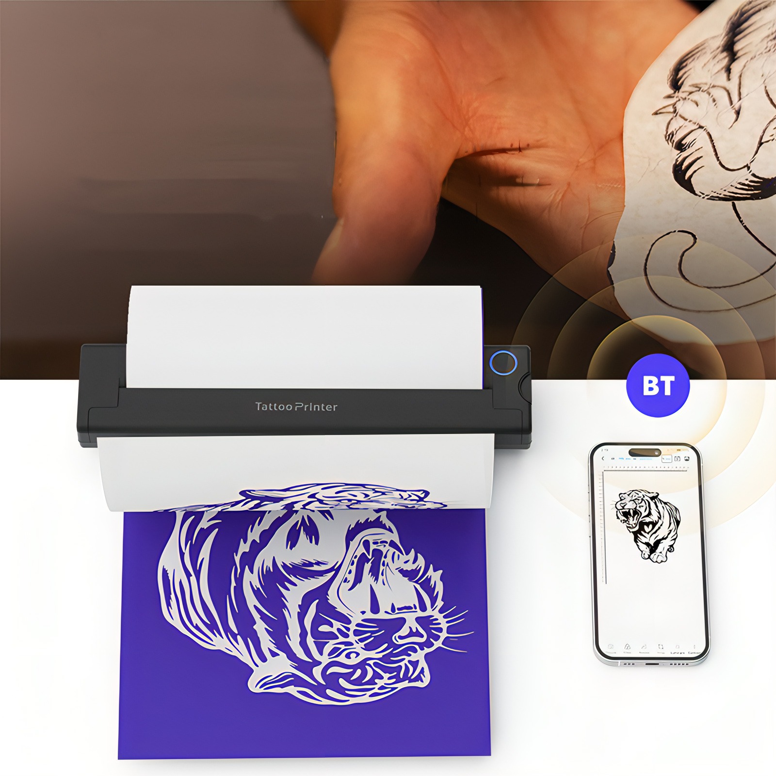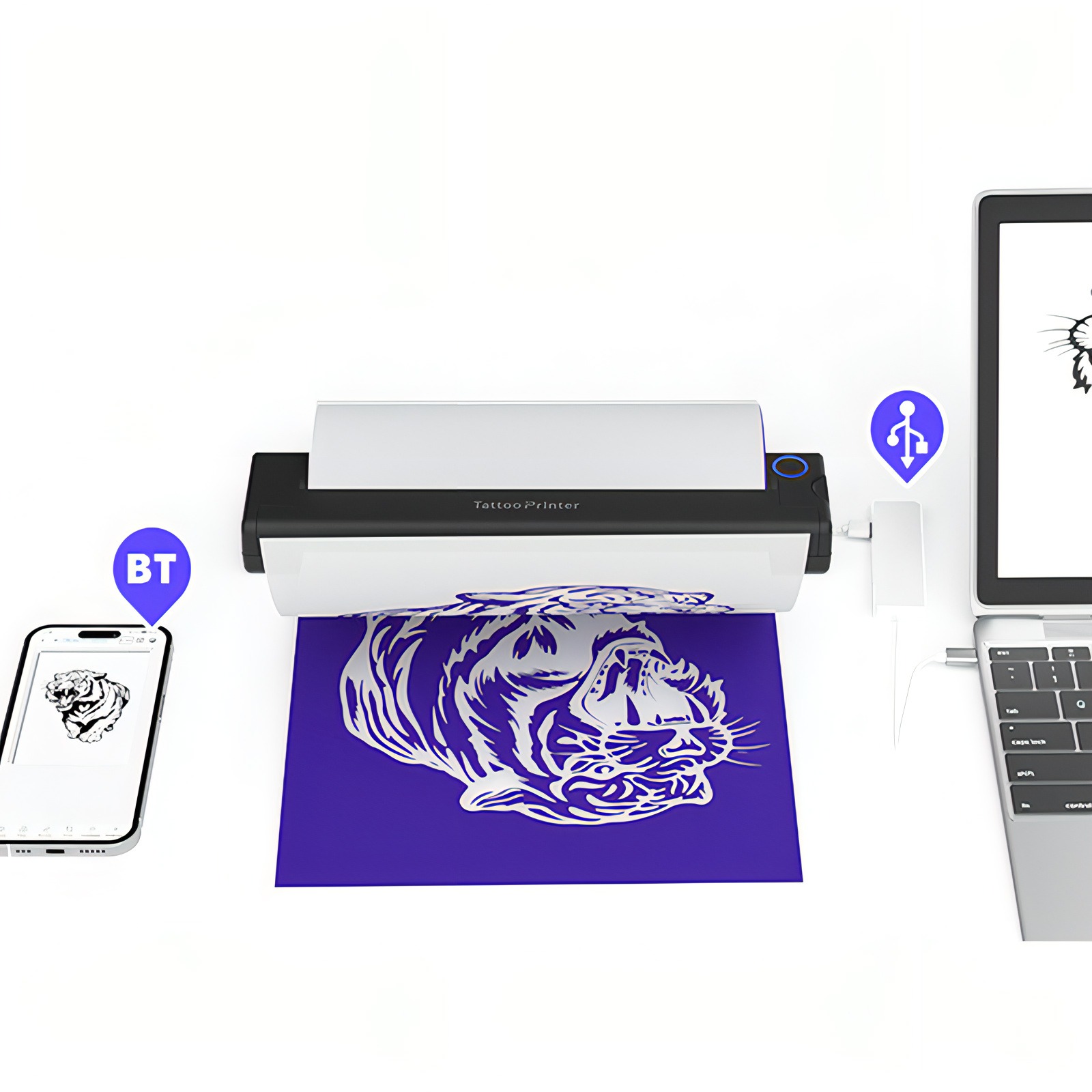 Download the app and connect your phone via Bluetooth or your computer via USB to print the design.