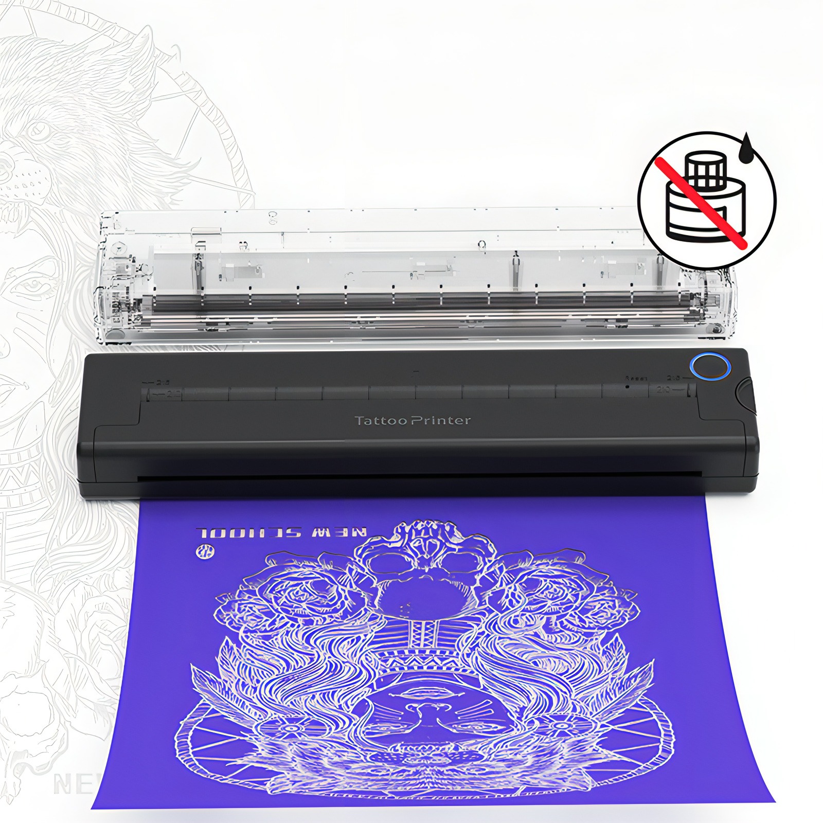 Remove the transparent protective film and yellow backing plate, leaving the white transfer paper and ink page.