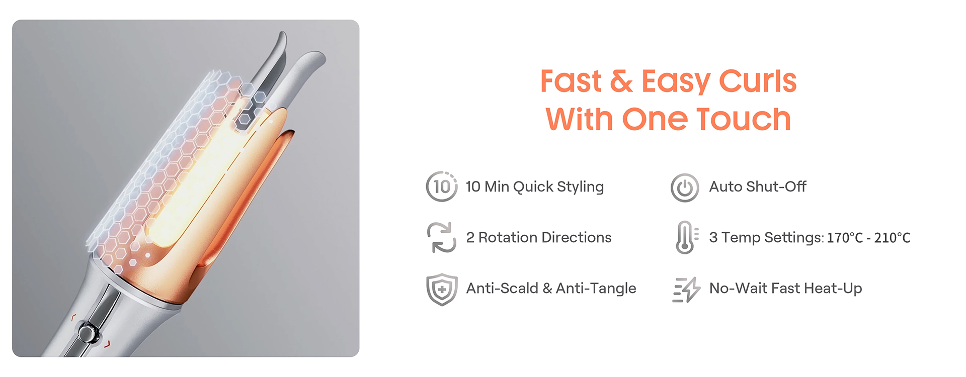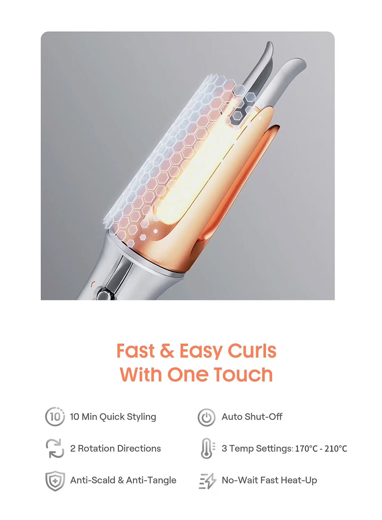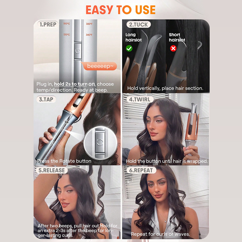 Salon-style curls at home in minutes—just clamp, press, and curl.