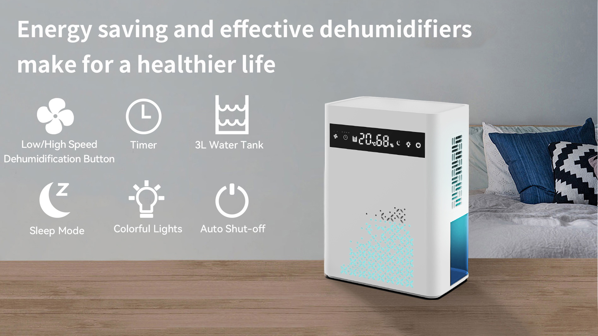 Extracts the moisture in the air so your room feels more comfortable to be in using a highly efficient Dehumidifying Technology.